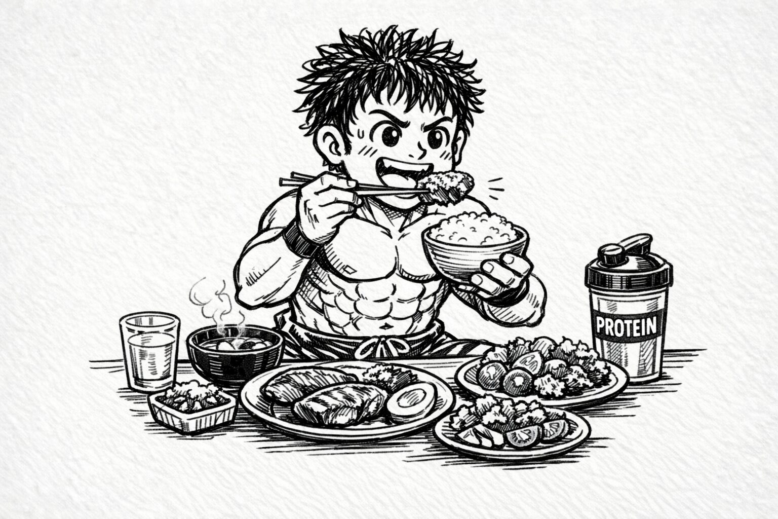 このように、毎食でたんぱく質を入れつつ、炭水化物もしっかり組み合わせることで、筋肉づくりに必要な栄養を確保しやすくなります。